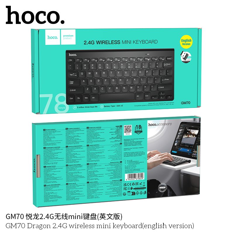 Bàn Phím Mini Không Dây Hoco GM70 Dragon Kết Nối Ổn Định Thiết Kế Nhỏ Gọn | Vi Tính Hóc Môn
