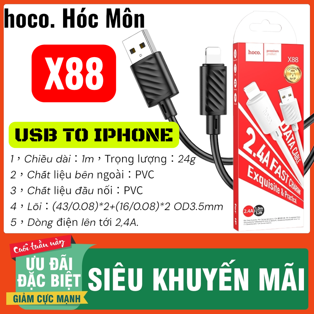 Cáp sạc Hoco X88 IP là sản phẩm phụ kiện chất lượng cao dành cho người dùng iPhone, iPad với khả năng sạc nhanh, truyền dữ liệu ổn định và độ bền vượt trội. Ngay từ đầu, sản phẩm đã được đánh giá cao nhờ thiết kế chắc chắn, giá thành hợp lý và đáp ứng tốt nhu cầu sử dụng hàng ngày.