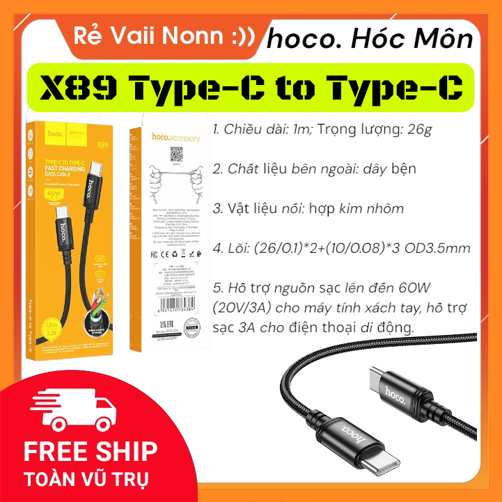 - 2. 🔧 Thông Số Kỹ Thuật Cáp Sạc Hoco X89 Type-C Sang Type-C