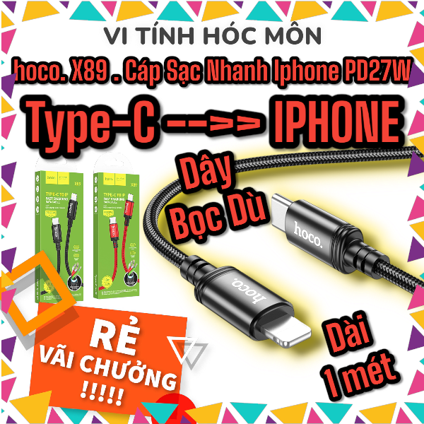 ⚡ DÂY SẠC NHANH HOCO X89 PD 27W TYPE-C TO IP – CHUẨN PD CHO IP ⚡