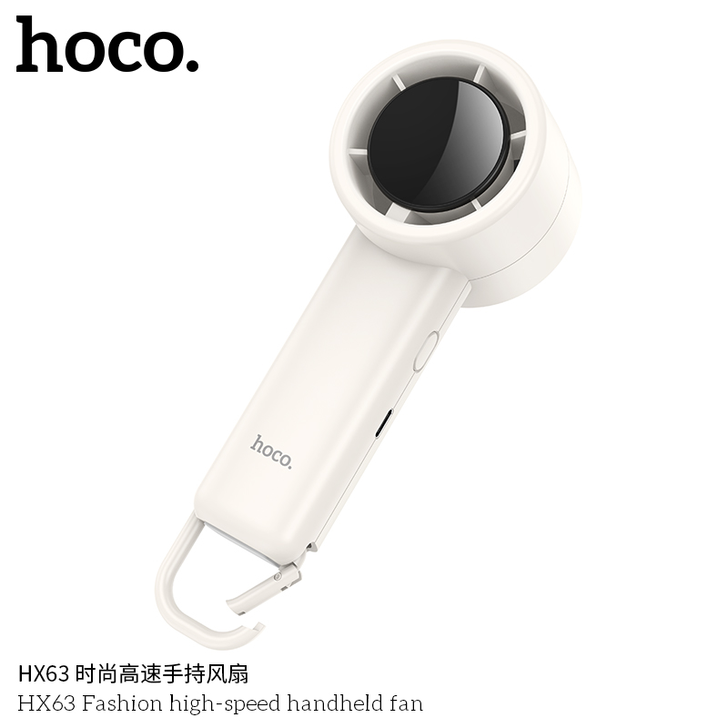Quạt cầm tay Hoco HX63 còn được trang bị móc treo, giúp người dùng có thể treo quạt lên các vật dụng khác như túi xách, balo, giúp tiện lợi hơn trong việc sử dụng. Ngoài ra, quạt còn có màn hình LED hiển thị, giúp người dùng dễ dàng quan sát và điều chỉnh tốc độ gió.