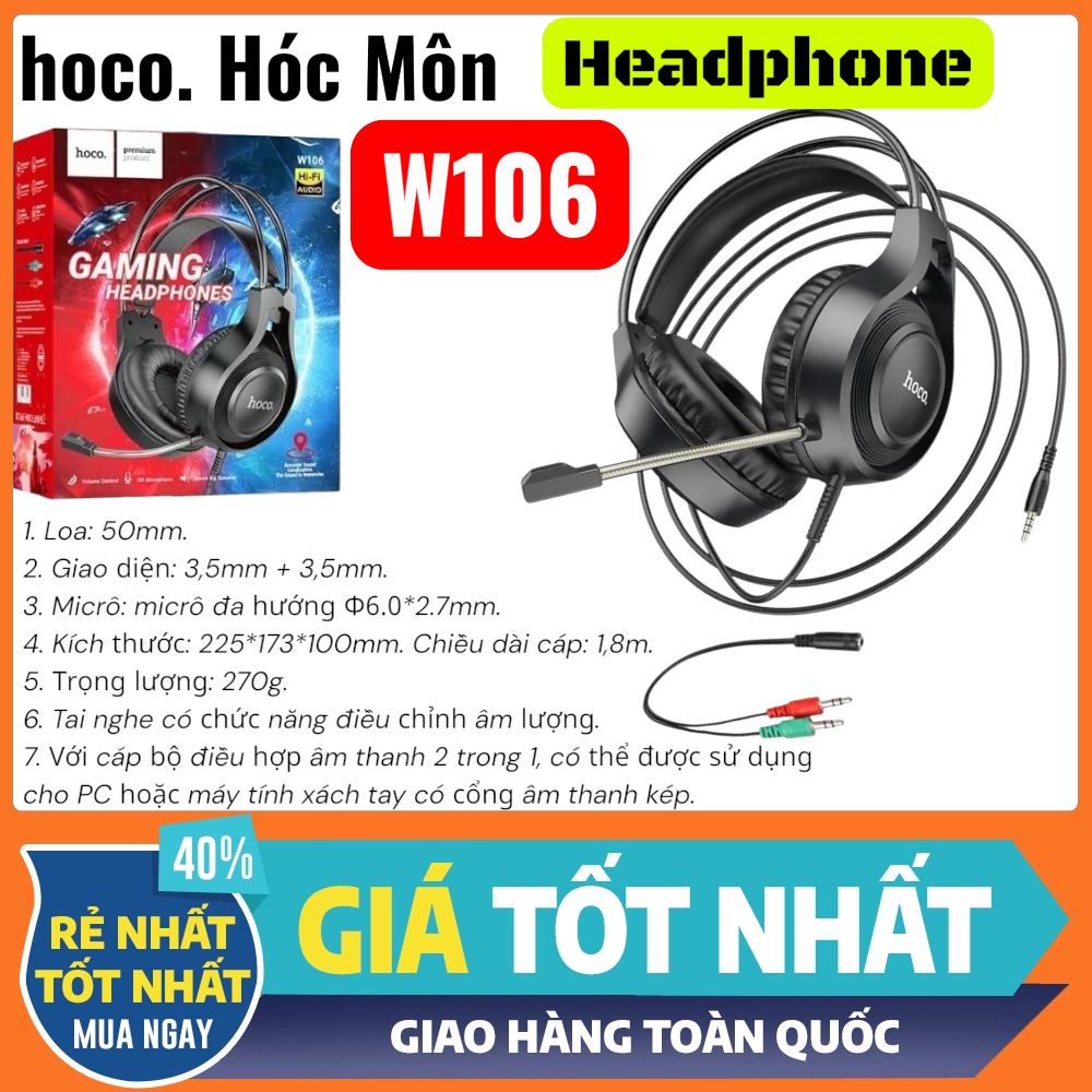 Tai nghe headphone Hoco W106 là sản phẩm chất lượng cao, phù hợp cho nhu cầu học online, làm việc và chơi game. Với thiết kế hiện đại, âm thanh mạnh mẽ cùng mic rõ nét, đây là lựa chọn lý tưởng cho người dùng phổ thông.